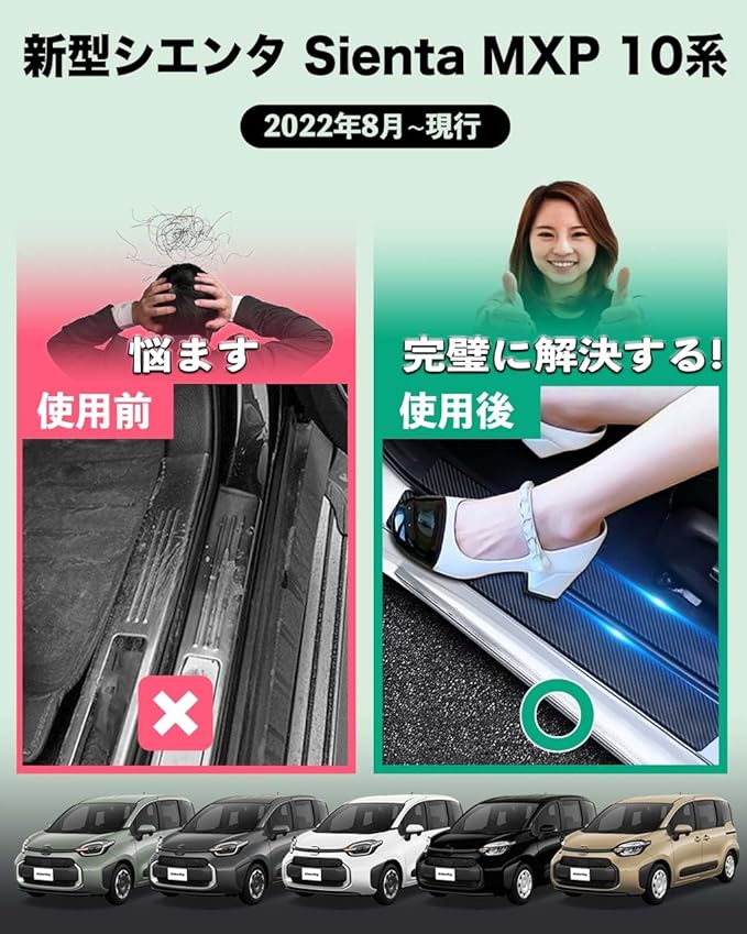 HUDIY(フーディ)新型シエンタ MXP 10系 車 サイドステップガード スカッフプレート SIENTA 10系 (2022年8月~現行)車用内装パーツ 滑り止め 汚れ防止 キズ防止 日本語の取り付け説明書付き 4点セット