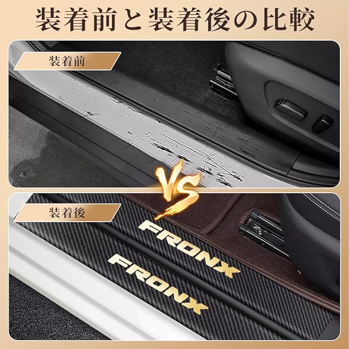 スズキ フロンクス 2024(令和6)年10月 発売モデル サイドステップガード スカッフプレート スズキ フロンクスWDB3S全系適用 フロンクス内装パーツ 金箔技術 金メッキ技術 内装アクセサリー 粘着力強い 水防止 汚れ防止 傷防止 簡単取り付け 4件セット (金色)
