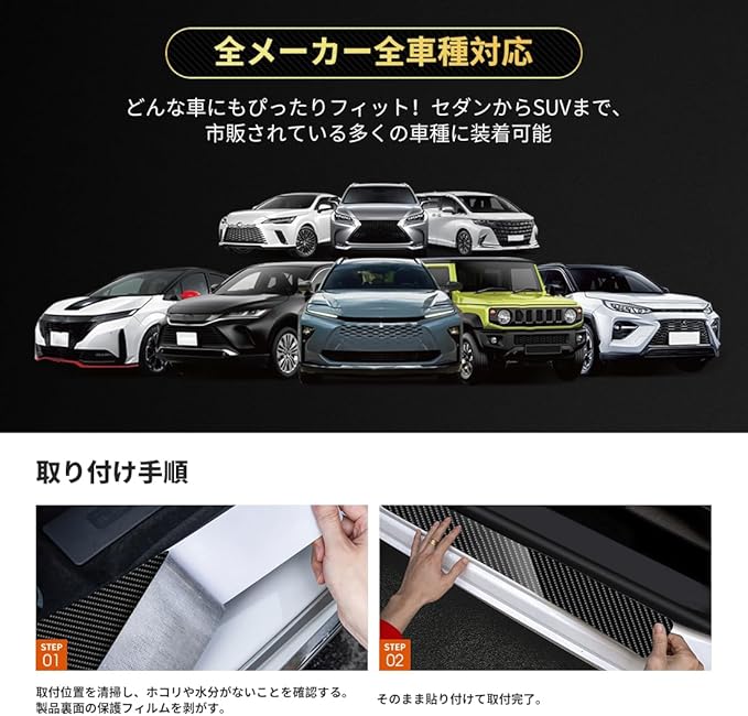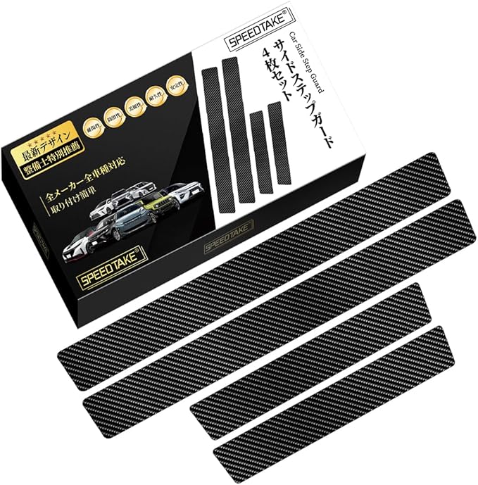 新型 サイドステップガード 整備士超すすめ スカッフプレート 全メーカー全車種対応 モデリング再設計 炭繊紋柄 キズ防止 車体 塗装保護 滑り止め 厚みある 安定性 カーアクセサリー 見た目よい 美観 跡残らず DIY 限定パッケージ 取り付け簡単 4枚セット
