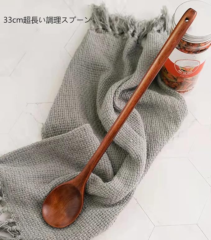 木製 ロングスプーン 2本セット 27.5cm+33cm ロングハンドル 調理スプーン 長い 煮物 ホットポット 鍋 マドラースプーン