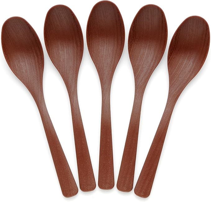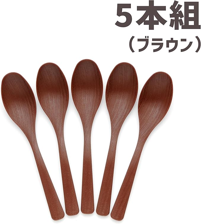 宮本産業 レンゲ 蓮華 カトラリー 割れにくい セット 食洗機に使える木目調 スプーン (5本組)