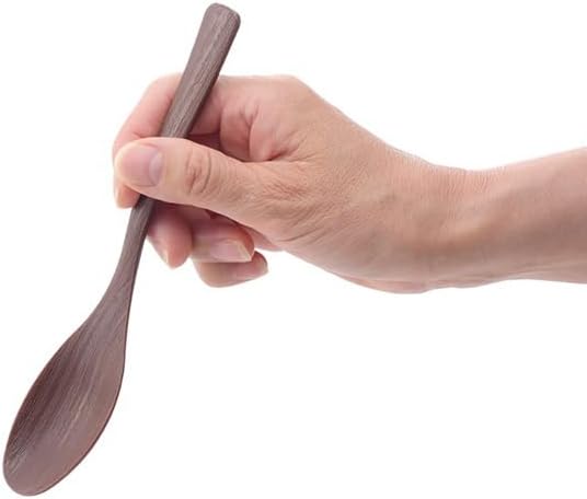 軽くて扱いやすく割れにくい材質です。木目調の柄がおしゃれなスプーンです。口当たりが良い形状でカレーやデザートにも。