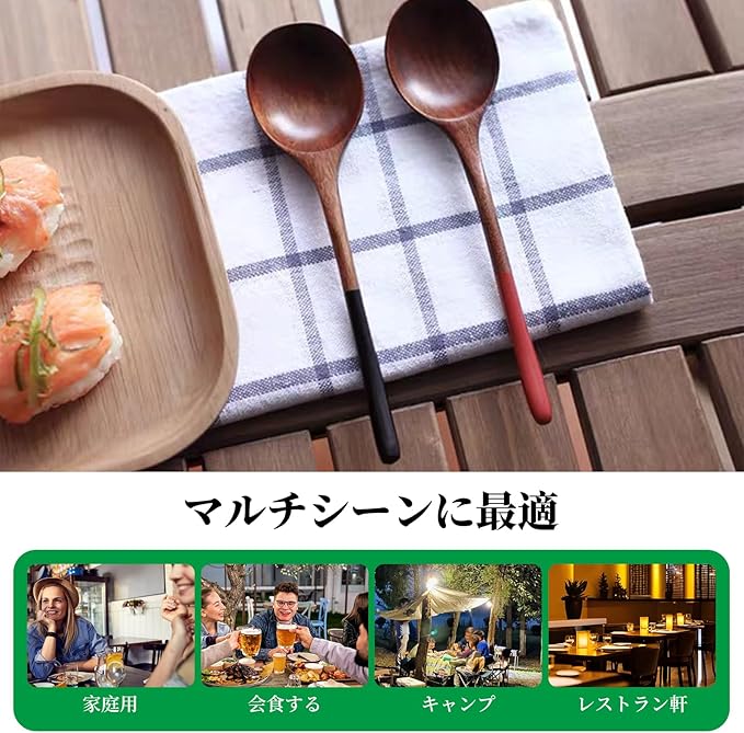 【用途広範】私たちの木製食器セットは、家庭食からレストランサービスまで、さまざまな用途に適しています。日常使いにも適しており、キャンプやピクニック、旅行などのアウトドアにも適しています。クラシックなデザインは、キッチン食器のスタイルと両立できることを保証します。