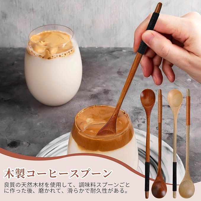 スプーン 天然木製 マドラー マドラースプーン 4本セット ロングスプーン 攪拌スプーン 調理用長いスプーン 調理スプーン 長い攪拌スプーン 業務用 飲料店 家庭用
