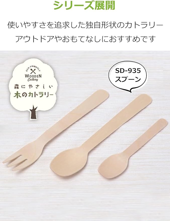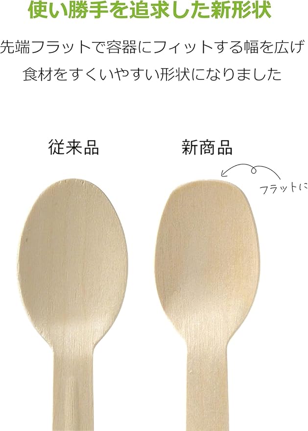 ●使い勝手を追求した新形状で、これまでの木製カトラリーの使いにくさを改善しました。