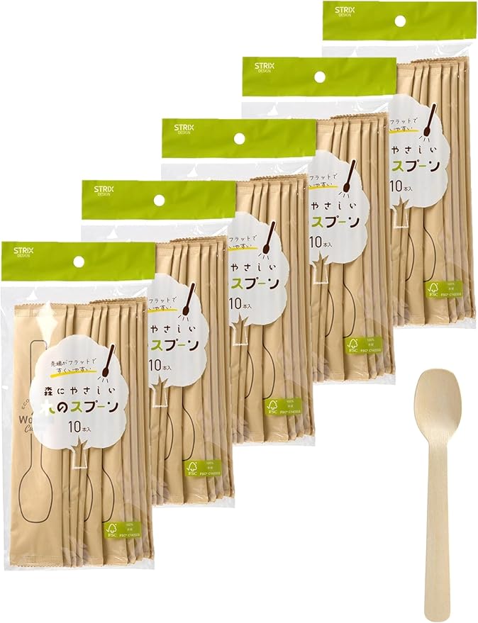 ストリックスデザイン 木製 スプーン 160mm 森にやさしい木のスプーン 50本 (10本入 5セット) 使い捨て 環境配慮 紙個包装 SD-935 【Amazon.co.jp 限定】