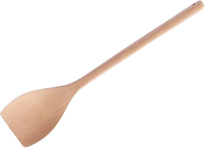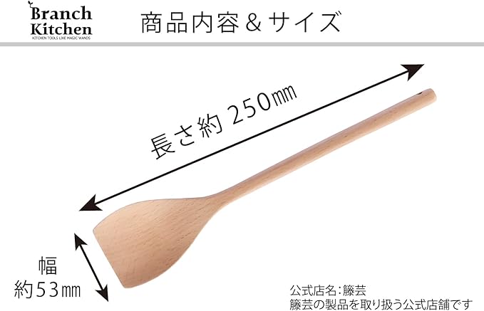 品質の良い木のスプーン・木製食器を30年近く製造・販売する(有)籐芸が販売する木製食器です。 スプーンの先端を切り取ったような珍しい形状ですが、羽根のように薄く広がったスクープ部分が食材を容易にすくったりかき回したりします。 平らな部分でこそぐのもとても楽です。 麻婆豆腐のように汁気のある料理もすくえます。 天然木〈ブナの木〉は柔らかい色合いの木目ときめ細かく小さな斑点が全体に入っているのが特徴です。
