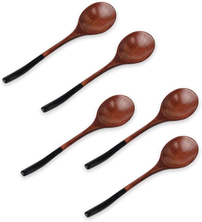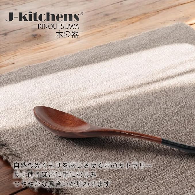 J-kitchens 木製 塗分け スープ スプーン 黒 5本 セット 15.7x4cm
