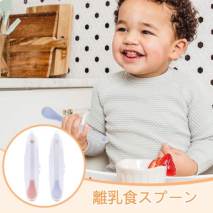 Doyime 離乳食スプーン ベビースプーン 2本セット 離乳食トレーニング 温度で色が変わる 赤ちゃん 食器 訓練 自分で食べる 子供用 ベビー食器