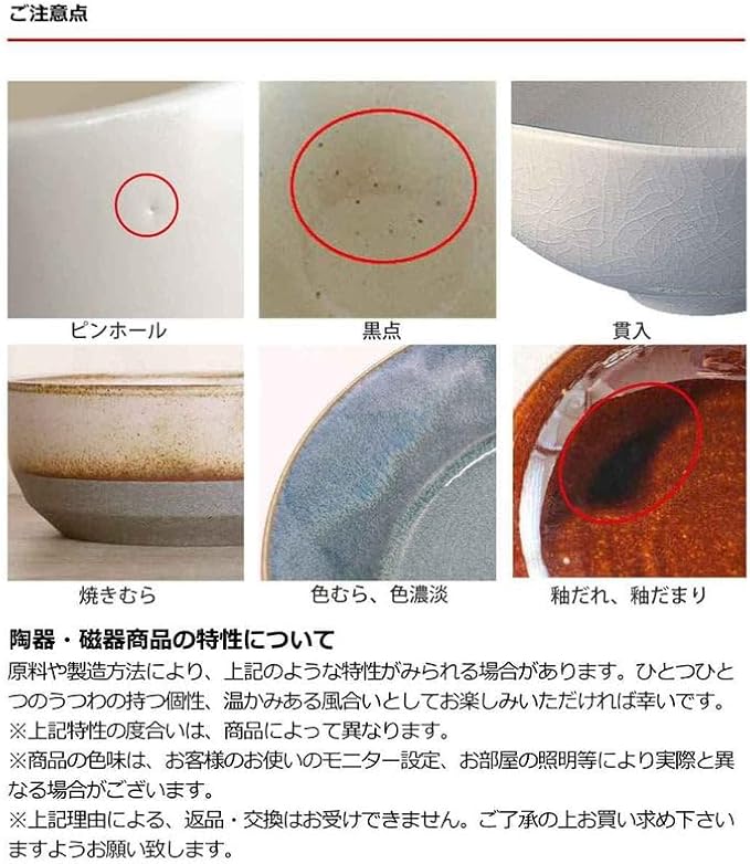 ※釉薬の特性上、色や風合いなどひとつひとつ器の表情が異なります。個性としてお楽しみください。