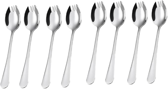 先割れスプーン 170mm 8本 サラダサーバー ステンレス鋼製 ケーキスプーン サラダスプーン ラーメンスプーン カレースプーン 食洗機対応 多機能用フォークスプーン 家庭 業務 通勤 通校に適用 (シルバー)