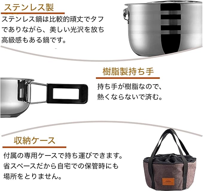【Amazon.co.jp 限定】NANGOGEAR(南湖 キャンプ ギア) 焚き火 BBQ用 鍋 セット ステンレスクッカー 6人用 NAN-MC-210