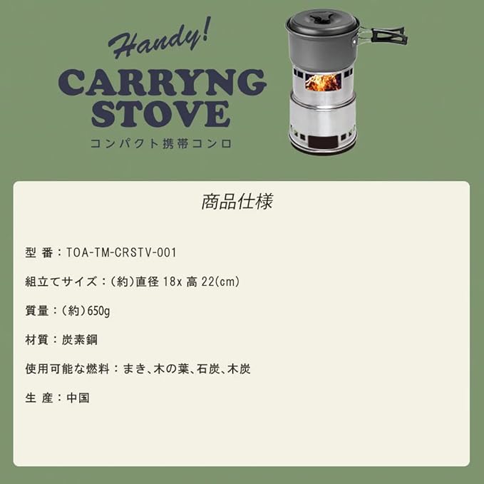 使用可能な燃料:まき、木の葉、石炭、木炭