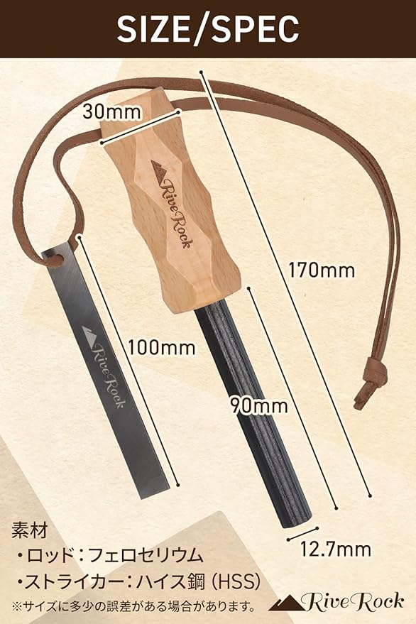 RiveRock(リバロック) 【圧倒的着火力】 ファイアースターター 極太 六角 ヘキサ型 フェロセリウム HSSストライカー 火起こし メタルマッチ ブッシュクラフト