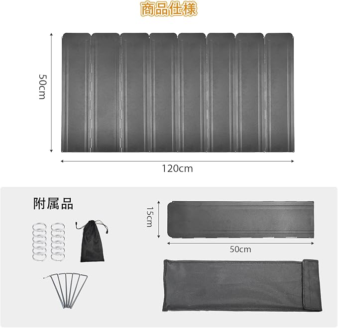 高さ設計: ガスストーブ用ウィンドスクリーンは十分な長さと高さを備え、さまざまなサイズのストーブに対応。炎を風から保護します。ストーブを中央に配置し、ウィンドスクリーンを立てることで火を風から守れます。
