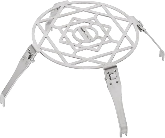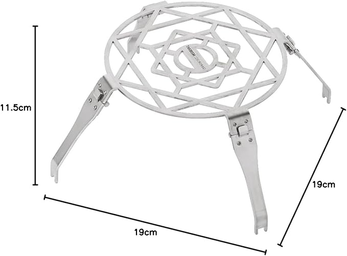 五徳の脚を広げて合わせるだけでそれぞれのサイズの焚火台に簡単に設置できます。簡単で使いやすいコンパクトサイズの折りたたみ式の五徳です。