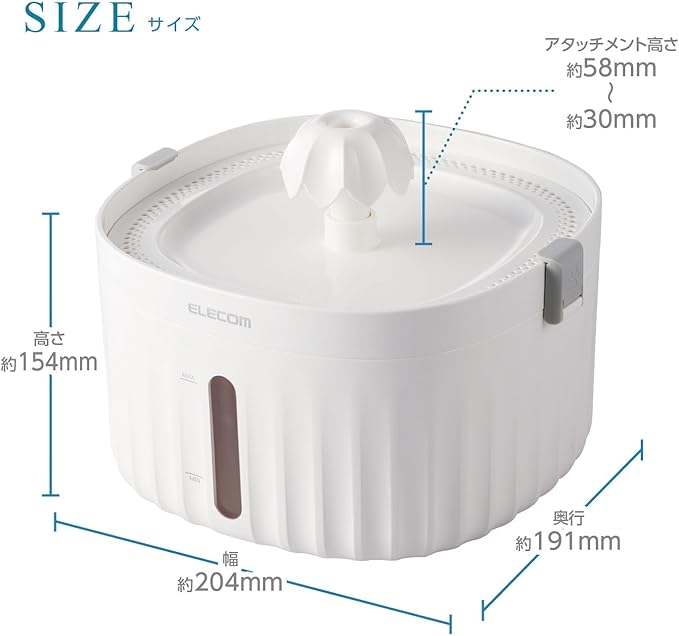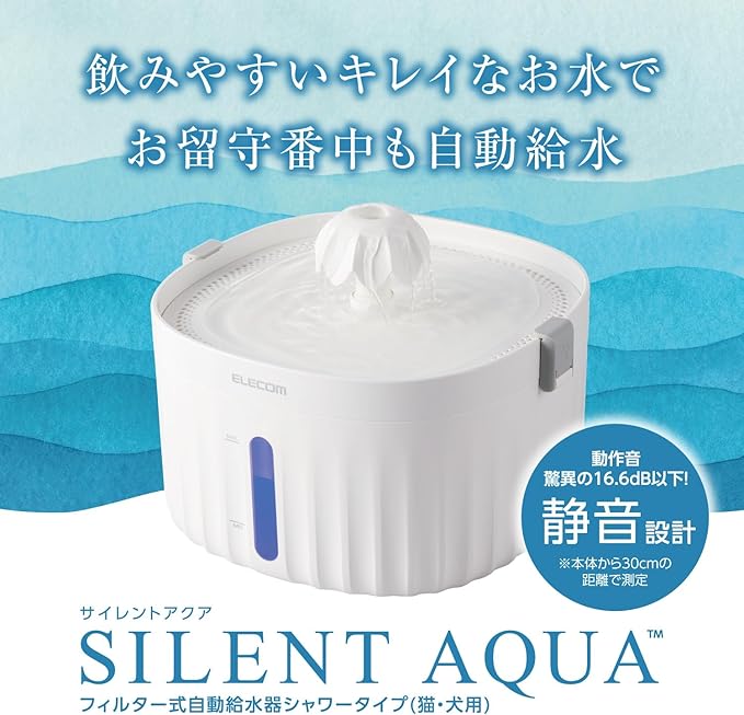 エレコム 自動給水器 容量2L 静音 騒音レベル16db以下 フィルター式 高さ調整可能 ロック機能付 4つの水流 猫 中小型犬用 サイレントアクア 幅204 奥行191 高さ154mm ホワイト PET-WD01WH