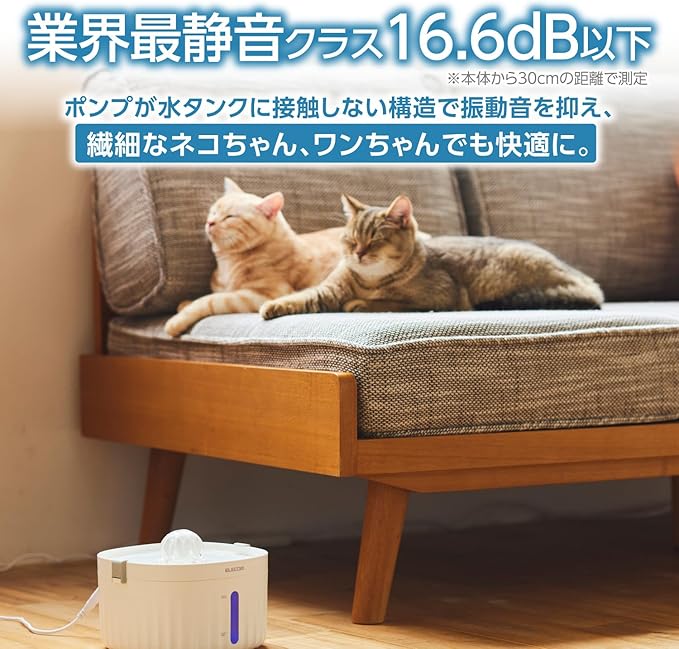 高密度3層構造のフィルターで、飲みやすいキレイなお水をどんなときでも。超静音設計でネコちゃん・ワンちゃんも安心の自動給水器です。※本製品が販売終了となった場合、販売終了から1年間は交換用軟水化フィルター(型番:PET-WD04FT)の販売を継続します。