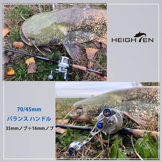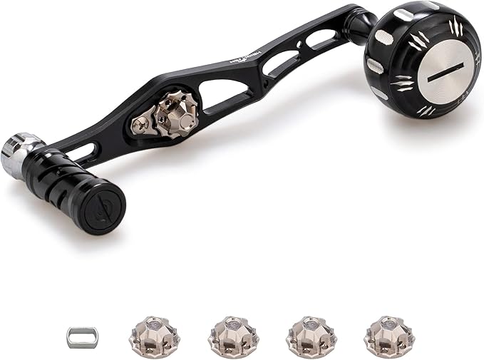 HEIGHTEN 改良型 70/45mm リール ハンドル シマノ(SHIMANO) ダイワ(DAIWA) アブ(Abu) ベイトリール 通用 V2.0 (ブラック/シルバー(ノブ)&ブラック(ハンドル)) (127)