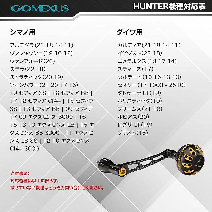 ゴメクサス CJ70 リールハンドル ダイワ (Daiwa) シマノ (Shimano) スピニングリール対応 シングルハンドル 23 ストラディック ツインパワー ステラ ナスキー カルディア 交換 70/63mmハンドル 30/38mmノブ付き シーバス 青物 ライトショアジギング 海釣り 左右兼用