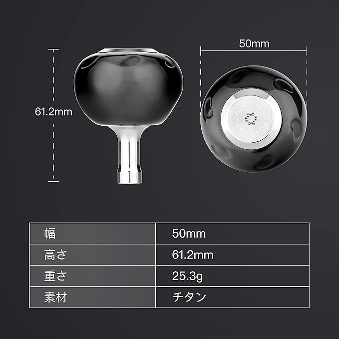 【製品仕様】「ハンドル長さ」90mm「ノブサイズ」50mm 「重さ」106.6g 「付属品」レンチ1本 『対象魚目安』オフショア ジギング