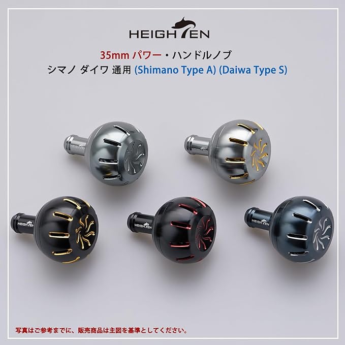 HEIGHTEN 35mm パワー リール ハンドル ノブ シマノ ダイワ 通用 (Shimano) Type A (Daiwa) Type S 用 Chrysant Series (ブラック&レッド) (732)