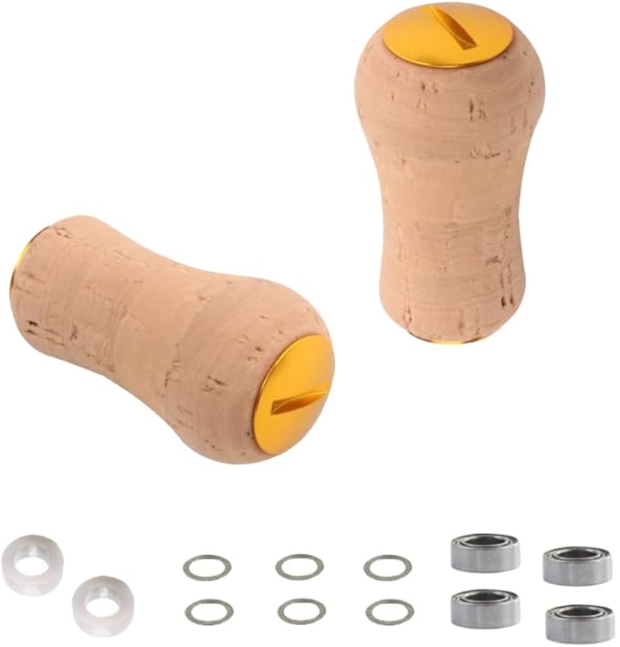For シマノ用 ダイワ用 SHIMANO DAIWA コルク 木製ノブ パワーハンドル ノブ ベイトリール 釣りリール ハンドル 交換用 ねじ ベアリング付き YU323 (金)