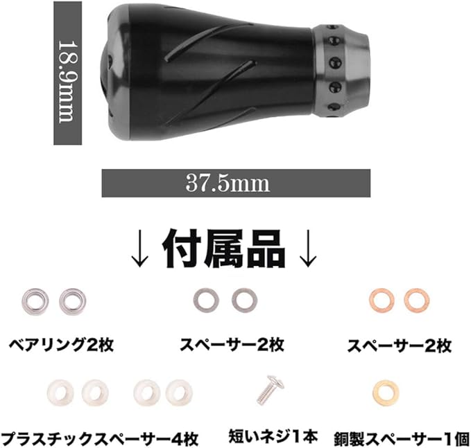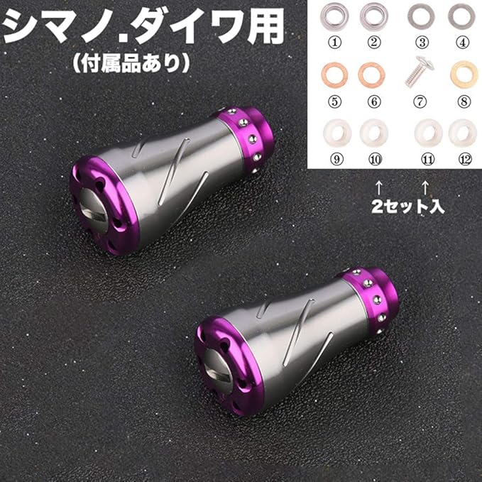 ノブ2個入り(付属品も2セット) タイプ:改装ハンドルノブ 材質:合金製 適用:シマノ / ダイワ 改装交換用 ノブ本重さ:8g/個