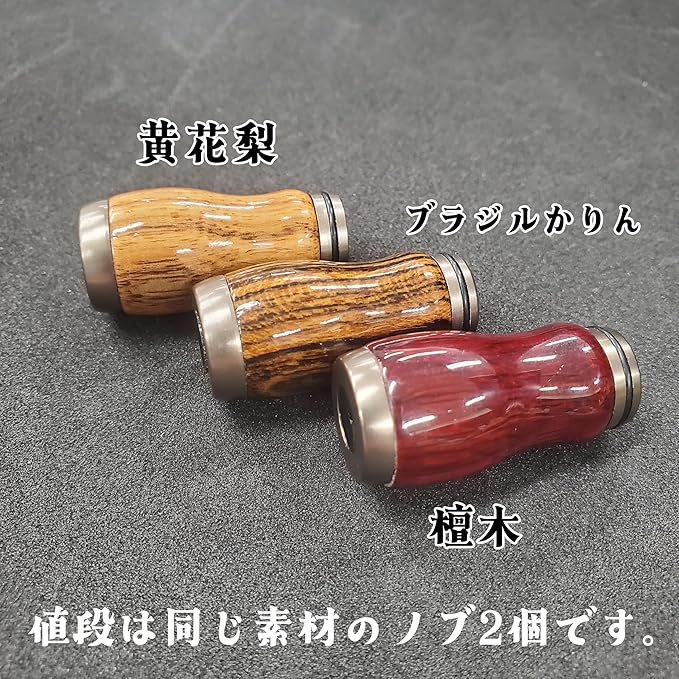 木製ノブ 2個入り パワーリールハンドルノブ シマノ Shimano ダイワ Daiwa に適合する 檀木 花梨木 釣りリール ハンドル ボール 適用 ベイトリールスピニングリール対応 交換用 ベアリングき yu364 (B ブラジルカリン2個)