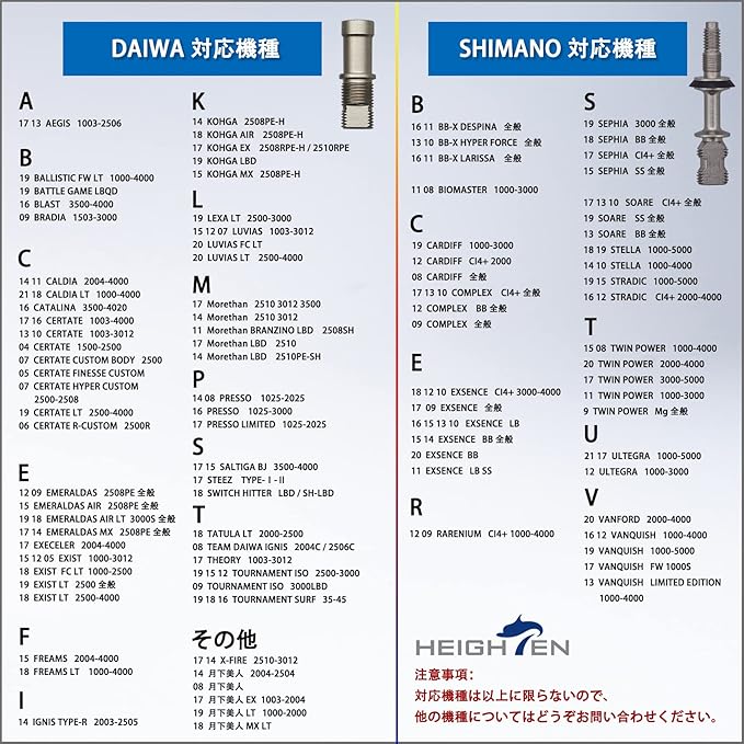 【適応機種】SHIMANO、DAIWAのねじ込み式スピニングリールハンドルの交換に適用。