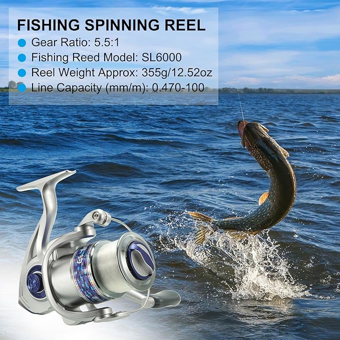 PATIKIL 釣りリール SL6000ウルトラライトソルトウォーターリール 左右交換可能ハンドル 5.5:1ギア比 フレッシュウォーター ソルトウォーター アイスフィッシング用 シルバートーン