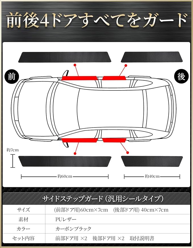 サイドステップガード ステップガード 【整備士監修】 スカッフプレート 車 キズ防止 4枚セット Cle Alra