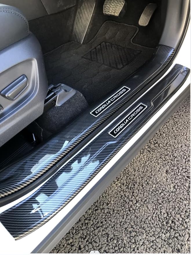 MEKOMEKO トヨタ 新型カローラクロス 専用 内外側 スカッフプレート サイドステップ ステップガード 汚れ防止 滑り止め 傷防止 インテリアパネル アクセサリー ABS樹脂製 8PCS 簡単取付 Corolla Cross 2021年9月-2025年5月マイナーチェンジ後対応【カーボン調】CRS-MKNWK