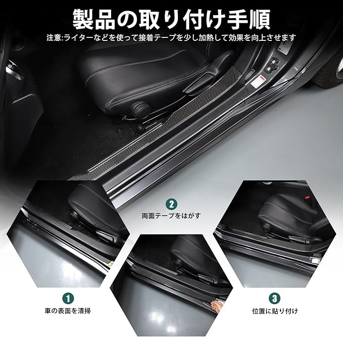 【取付簡単】背面に強力な両面テープが付いており、煩わしい工具を使用することなく、簡単に取り付けが可能です。取り付け手順は分かりやすく、初めての方でも安心して取り付けが行えます。取り外しも容易なので、いつでも簡単に装着を変更することができます。