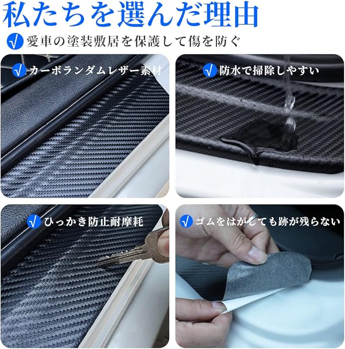【プレミアム素材】超耐久性素材、強力な粘着力、雨でも剥がれない、サイドステップガードはドアホルダーの本体をあらゆるひっかき傷からの保護します。 超薄型でぴったりとしたデザイン、車のドアハンドルに影響を与えません。