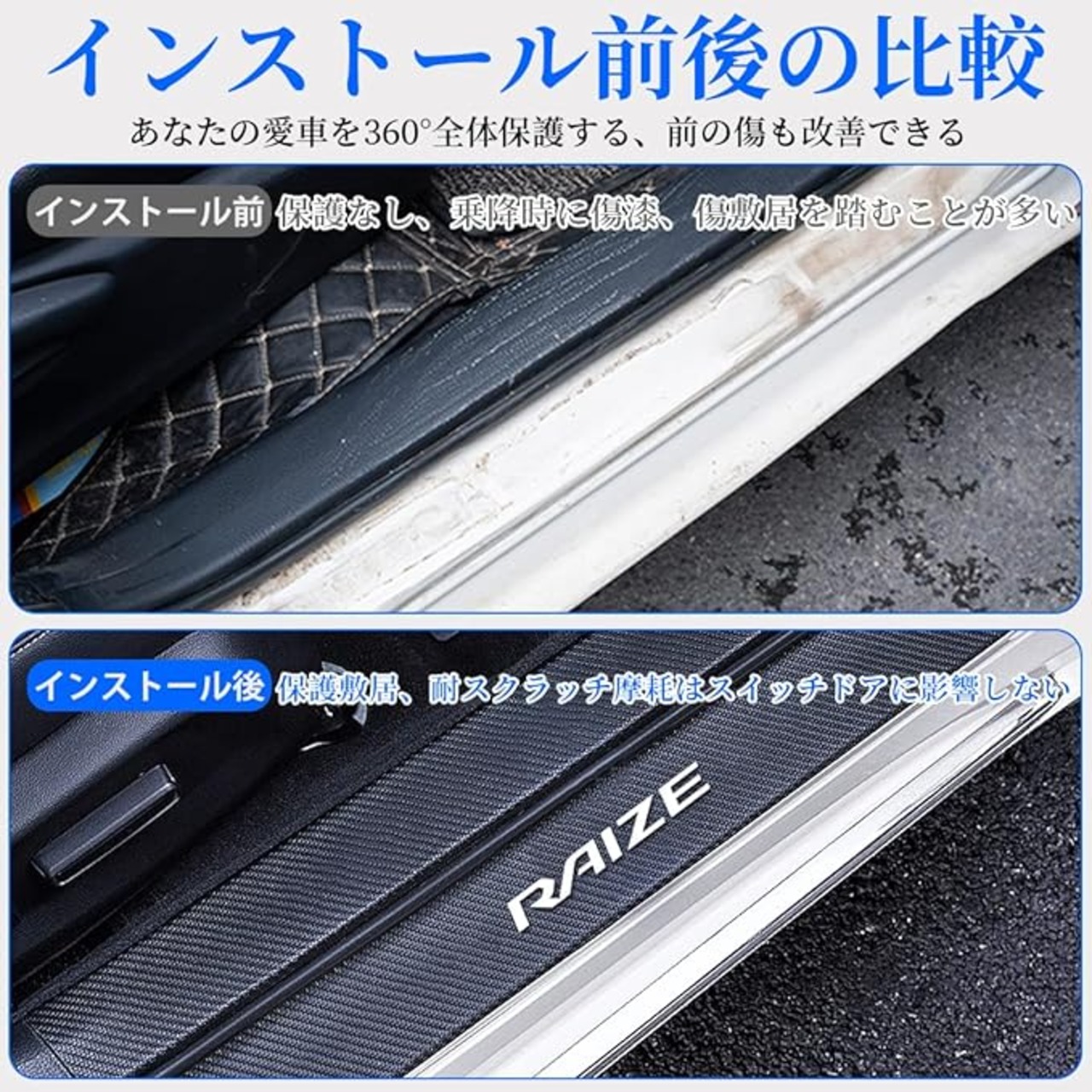 車用 サイドステップガード スカッフプレート サイドステップアクセサリー ドアガード 高級素材 高級雰囲気 保護 傷防止 ひっかき傷 傷隠し 防汚れ 4点セット (ライズ, ホワイト)
