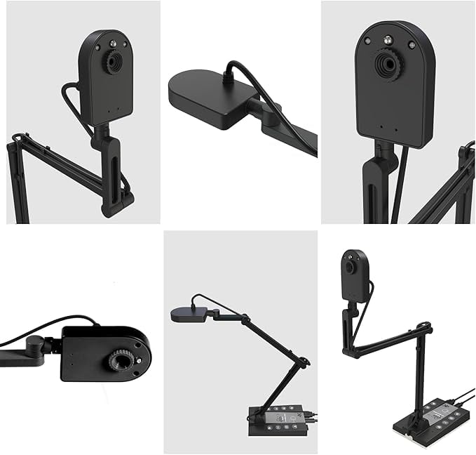 【自由なアングルで撮影が可能】一般的なモニターに取り付けるタイプと異なり、本書画カメラをデスクに設置し、自由に角度を調整できる5つのジョイントと360度回転できる上部のカメラにより様々な高さと角度からのカメラ撮影が可能です。