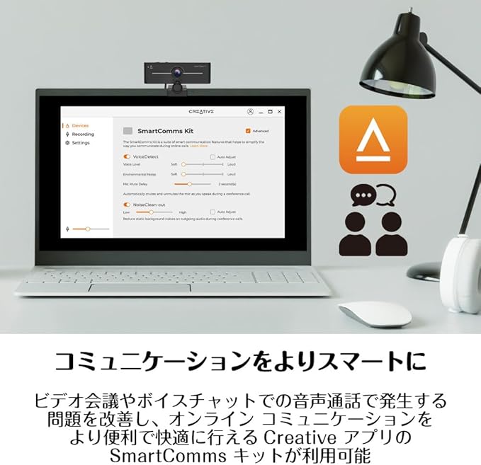 Creative Live! Cam 4KはUVC(USB Video Class)に対応、Windows PCやMacのOS標準ドライバーで動作、USBポートに接続するだけですぐに使えます。ZoomやSkype、Microsoft Teams、Cisco WebEx、Google Meetなどの主要ビデオ会議ソフトウェア※4で使用することができ、ソフトのセットアップも簡単に行なえすぐにビデオ通話を始めることができます。