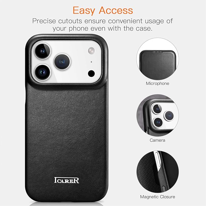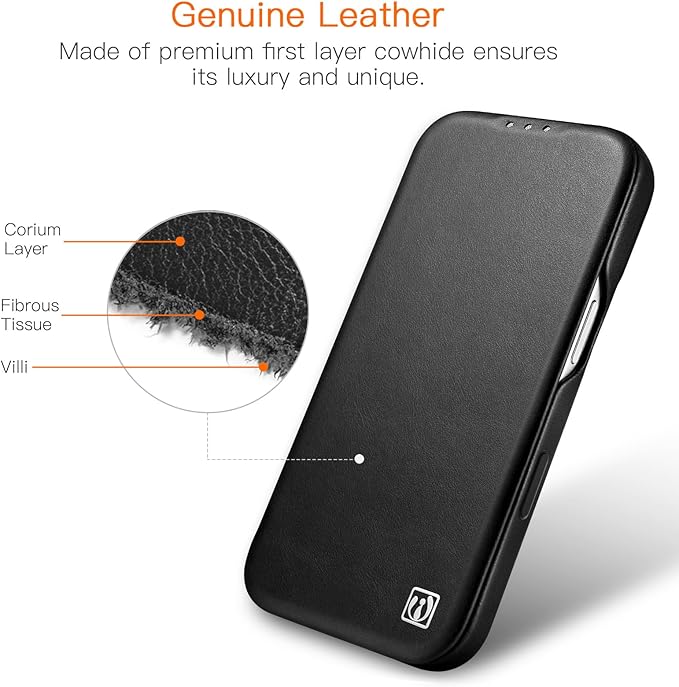 iPhone 17 Pro Max 用 ケース 手帳型 本革レザー 薄型 軽量 カード収納付き 財布型カバー Mag-Safe対応 耐衝撃 フルカバー保護 (ブラック)