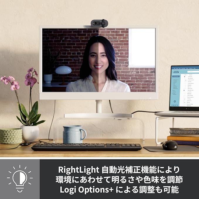 自動光補正:RightLight機能により、影を軽減することで従来のロジクールウェブカメラと比較し明るさを最大50%向上。最適な画像を相手に届けることができます