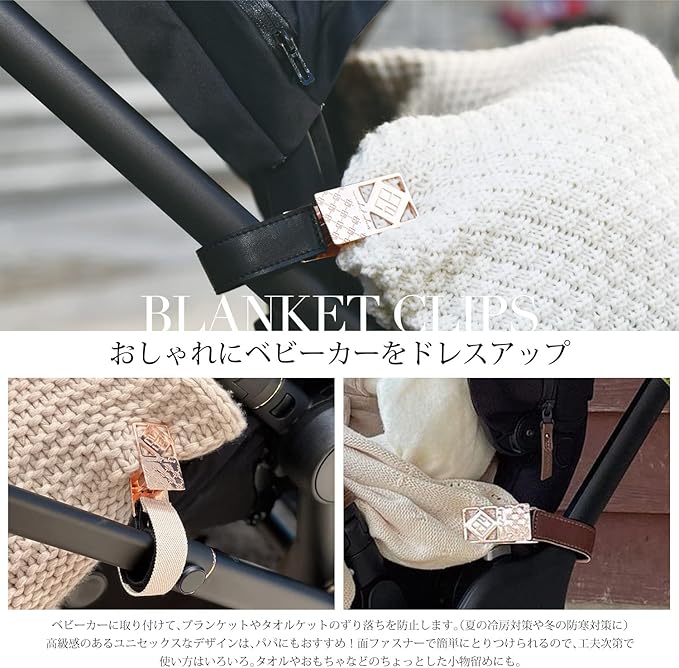 【ブランケットクリップ】夏の冷房対策や冬の防寒対策に!ベビーカーに取り付けて、ブランケットやタオルケットのずり落ちを防止します。