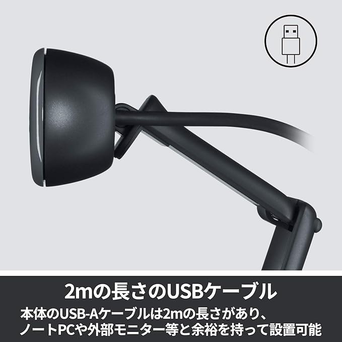 ロジクール Webカメラ C505 HD 720P 自動光補正 ロングレンジマイク 2mの長いUSB接続ケーブル Zoom や Skype 等主要なビデオ通話アプリに対応 ブラック ウェブカメラ ウェブカム PC Mac ノートパソコン 国内正規品 2年間無償保証