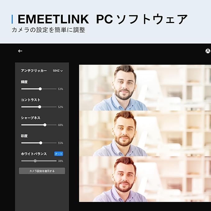 【プラグアンドプレイ&EMEETLINKでカスタマイズ】 EMEET C960 2K webカメラ マイク付きは、ドライバーを必要とせず、プラグアンドプレイが可能で手間を省くことができます。また、EMEETLINKを使用すると、カスタムイメージ設定を行い、ビデオを完全に自分の要件に合わせることができます。周波数も50Hzから60Hzに調整できるので、海外旅行者やリモートワーカーにも適しています。
