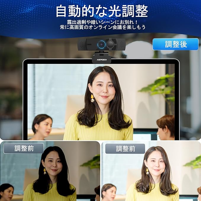 オートフォーカス&自動光補正で常にベストな姿に - 先進的なオートフォーカス機能により、動いても瞬時にピントを自動調整。さらに自動光補正が暗い環境や逆光でも自然で明るい映像を実現します。リモート面接やプレゼンでも、あなたの表情や印象を最大限に引き出します。