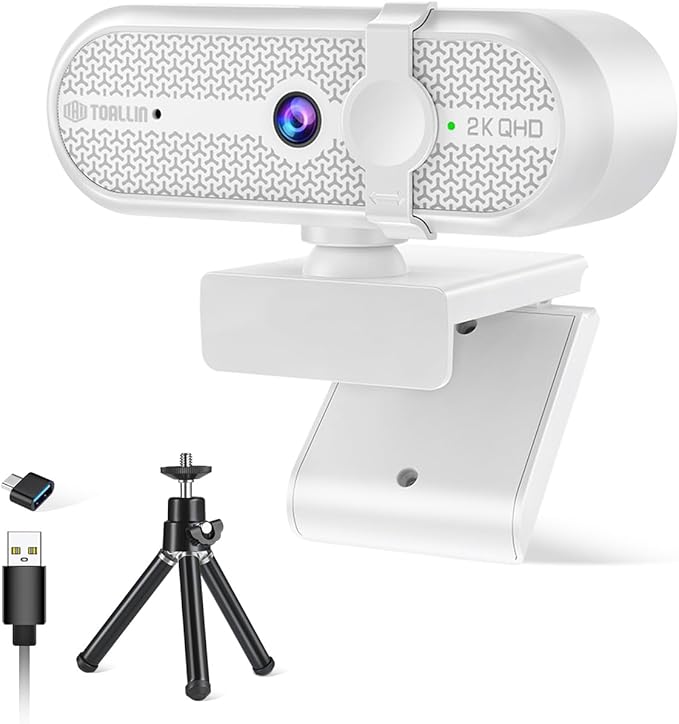 TOALLIN 2K ウェブカメラ ゲーム用 500万画素 マイク内蔵 90 広角ウェブカメラ 三脚付き USBコンピューターカメラ ノートパソコン用 ライブストリーミング ビデオ通話