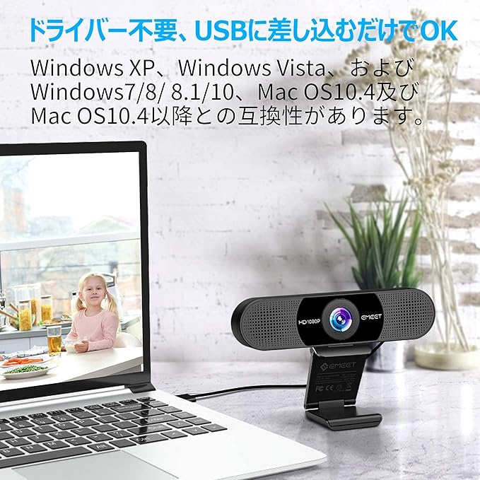 【360 集音・優れたオーディオ品質】全方向デュアルマイクが内蔵されwebカメラは、周りの声をしっかり拾いながら、ノイズも最小限に抑えられ、優れたオーディオを提供します。また、360 集音で、クリア且つ広りのある高音質を提供し、SkypeやZoomなどのWEB会議で大活躍します(ご注意:画面に波形・ちらつきなどが発生する場合、EMEETLINKというソフトウェアでアンチフリッカーを設置することで解決できます。