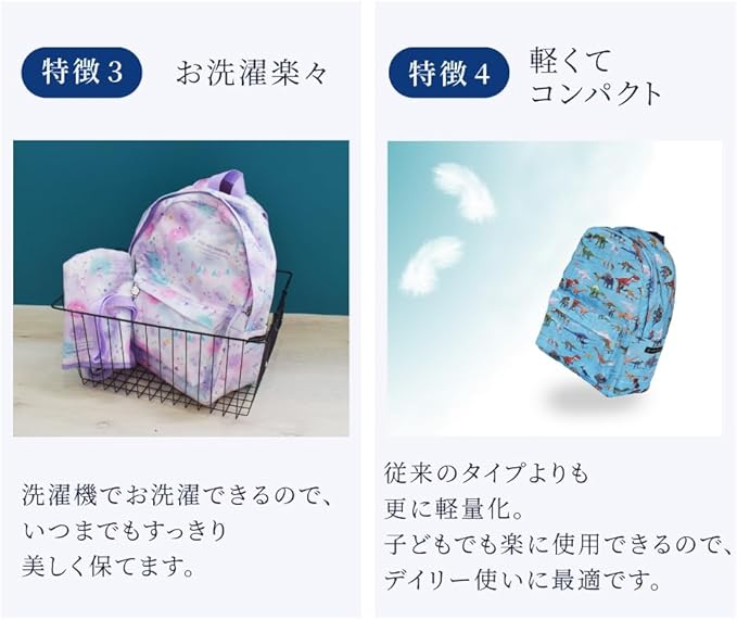 軽量・丈夫・速乾性。トップクオリティの新素材で快適さを追及!。快適さを追求した新素材は、シワになりにくく、耐久性もバツグン。今後もおしゃれ&可愛い柄で登場予定です。