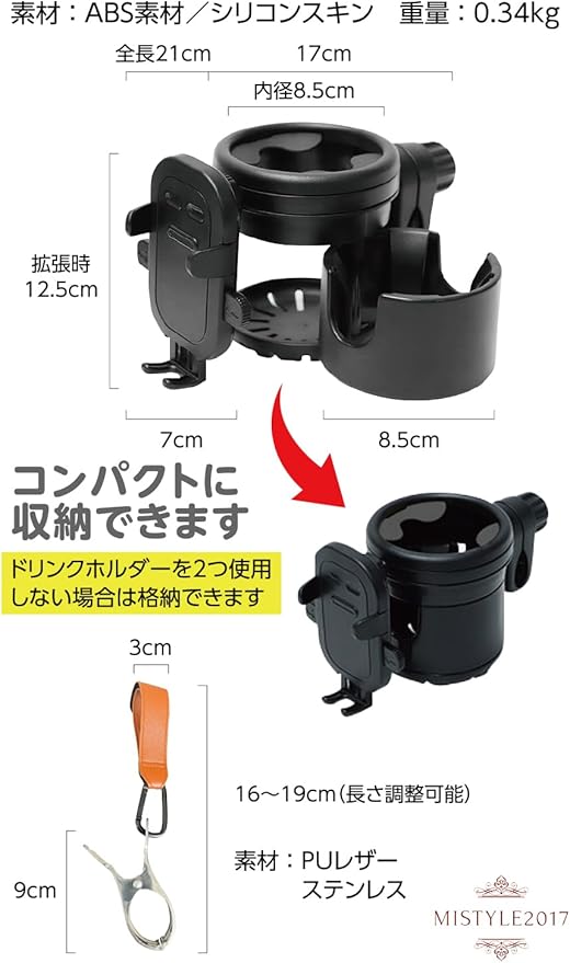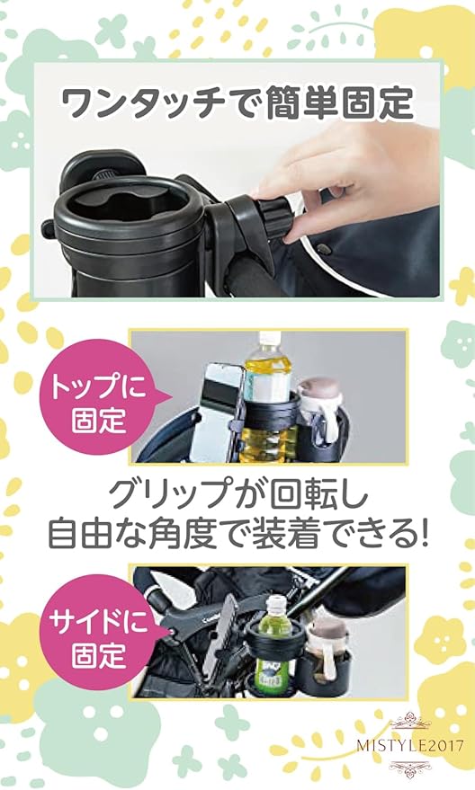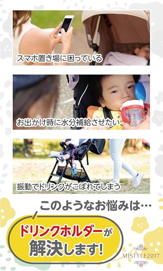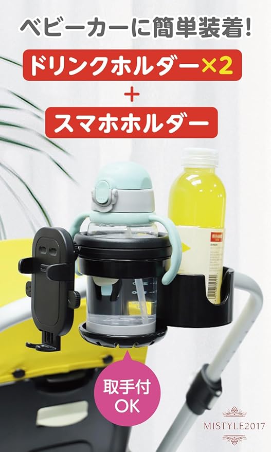 【MISTYLE2017】 ベビーカー スマホホルダー(シューズクリップ付き)ベビーカー ドリンクホルダー ボトルドリンクホルダー