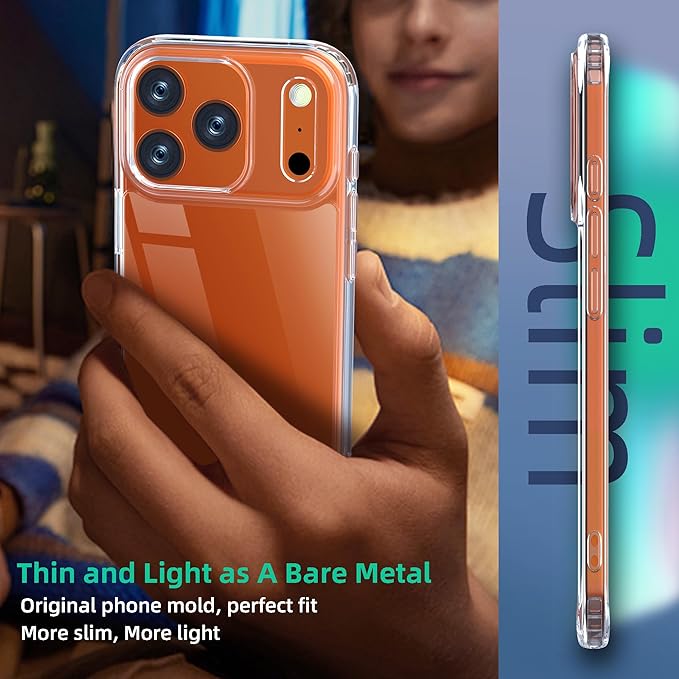 ONES iPhone 17ProMax 用 ケース ハード・クリア 【米軍MIL規格 耐衝撃】 エアバッグ 高靭性PC背面パネル 衝撃吸収TPUバンパー 黄変防止 画面・レンズ保護 滑り止め Qi充電対応 超軽量 クリスタルカバー