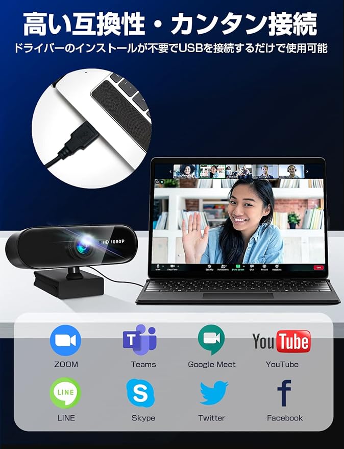 ✨【Web会議に便利・マイク内蔵タイプ】Web カメラ本体に低ノイズ・高音質のデジタルマイクを搭載しており、複数人で会話をすることも可能です。ノイズリダクション技術で騒がしい環境にいても周囲の雑音を低減しながら相手に自分の声をクリアに届けるので、ヘッドセットやマイクを用意する必要がなく、簡単にビデオチャットが楽しめます。 【簡単接続!USB差し込むだけすぐに使える】面倒な操作は不要、本WebカメラはUSBビデオクラス(UVC)に対応し、パソコンのUSBポートに接続するだけですぐに利用できます。専用ドライバーや難しい設定など必要がありませんので、機械に苦手の方でも簡単に使用できます。